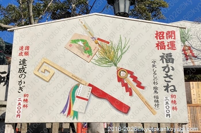 また、福化かさね(しるしの杉と神や、稲穂、絵馬が合体したお守り)や達成のかぎも授与されます。