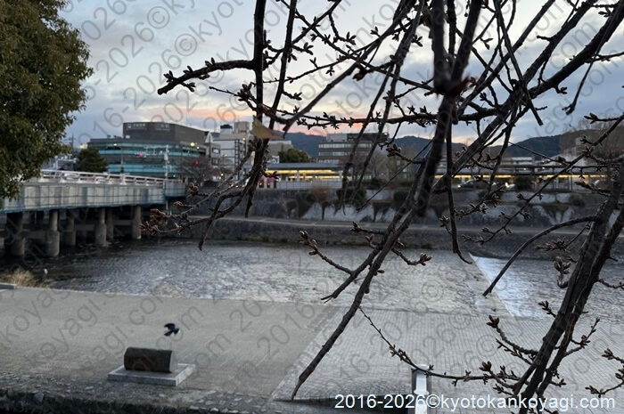 At Sanjo Ohashi bridge Higashizume, we can find some buds.