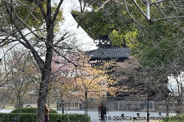 Keigamon gate is located near a Koban and Toji Higashimon mae bus stop. Go through it.