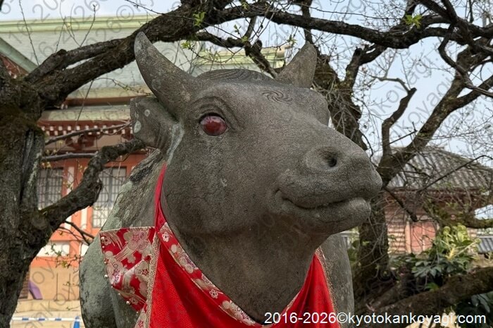 北野天満宮最古のウシさん(鳥居の奥にいます)のところも同様です。