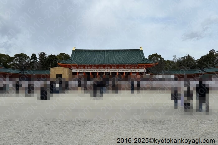 - 平日は平安神宮へのアクセス困難が惹起されている。京都駅からは地下鉄で四条まで行き、四条烏丸から46系統を利用を検討されたい。また、東山二条・岡崎公園口からのアクセスも可能である。地下鉄東西線東山駅の利用を推奨する。尚、2025年12月現在、平安神宮は工事中である(参拝は可能)。