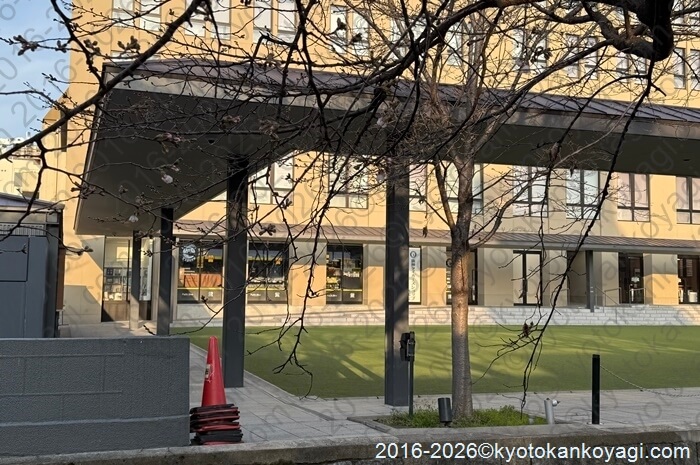 赤いアノテーションが三条大橋西詰の河津桜、青いアノテーションが先斗町歌舞練場です。赤い宇宙人のところでソメイヨシノが開花しています。