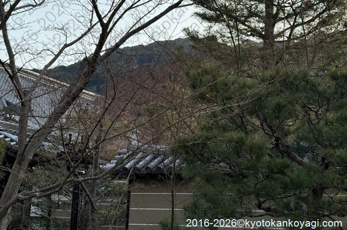 龍安寺石庭から見える枝垂桜や嵐山、山科方面は若干遅れることが多い。若干といっても数日以下である。
