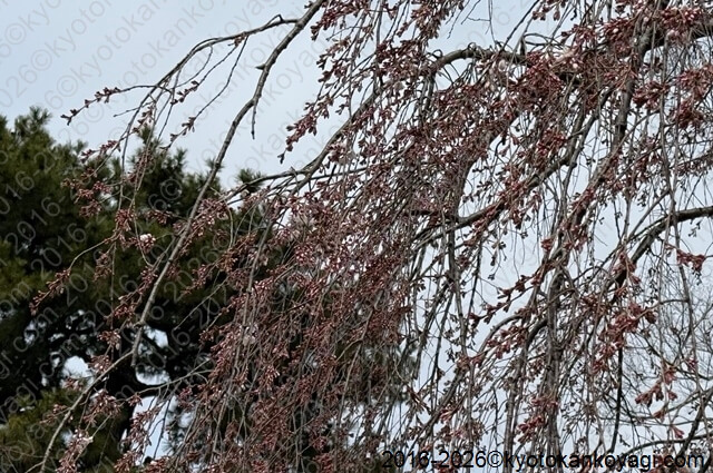 河津桜の次に枝垂桜、山桜が開花する近衛邸跡でも開花の兆しは見えません。
